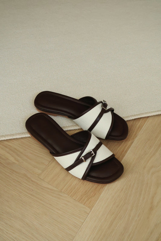 Oliver Contrast Buckle Slide Sandals (Chocolate)