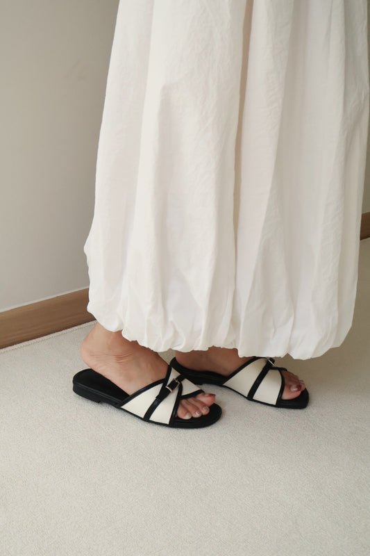Oliver Contrast Buckle Slide Sandals (Black)