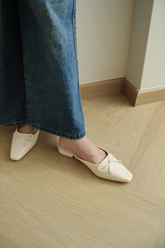 Marissa Bow Flat Mules (Cream White)