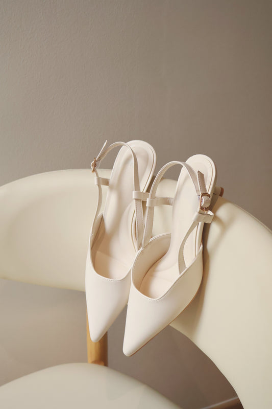 Zyra Pointy Slingback Heels (Cream White)