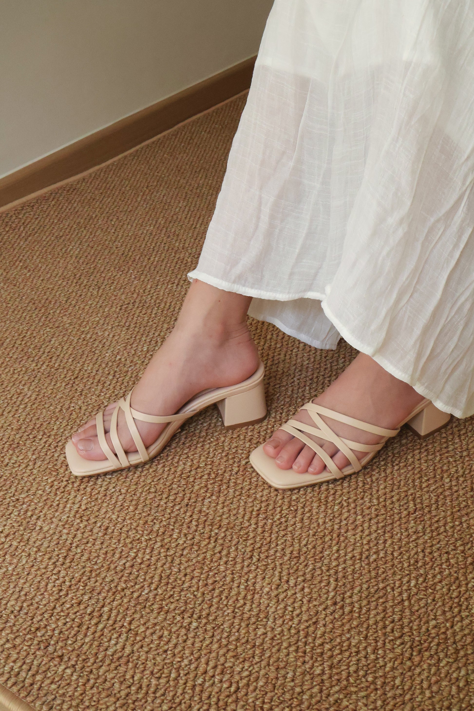 Cassie Strappy Block Heels (Beige)
